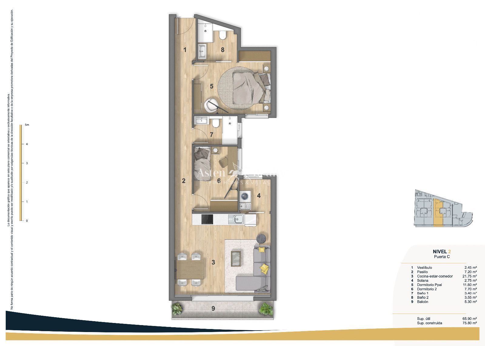 Квартира 2C, 2 спальни, 2 ванные комнаты, общая площадь 75,08 м2, балкон 5,3 м2, ЦЕНА €370.000