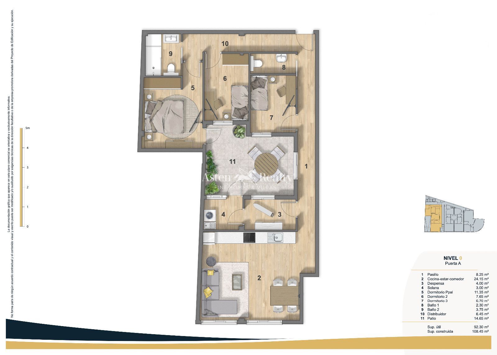Первый этаж 0A, 3 спальни, 2 ванные комнаты, 108,45 м2, ЦЕНА €345.000